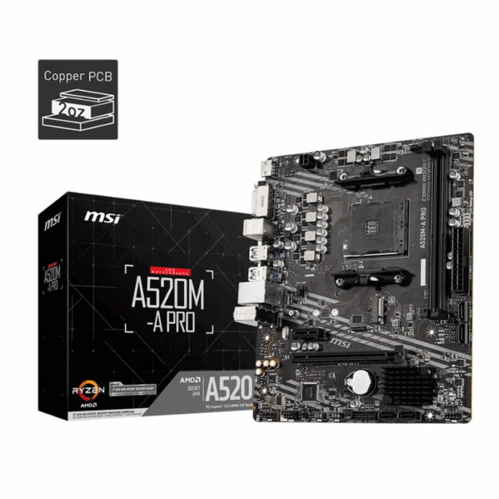 MSI A520M-A PRO Motherboard (AMD Ryzen 3000 3rd Gen AM4, DDR4, M.2, USB 3.2 Gen 1, HDMI, Micro ATX)