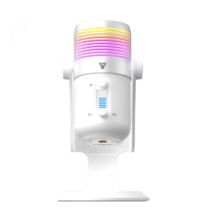 Micrófono Fantech MCX03 Blanco Leviosa Max en color blanco con conexión USB-C, tecnología de condensador, reducción de ruido y diseño moderno. Ideal para streaming, grabaciones, videollamadas y contenido profesional.