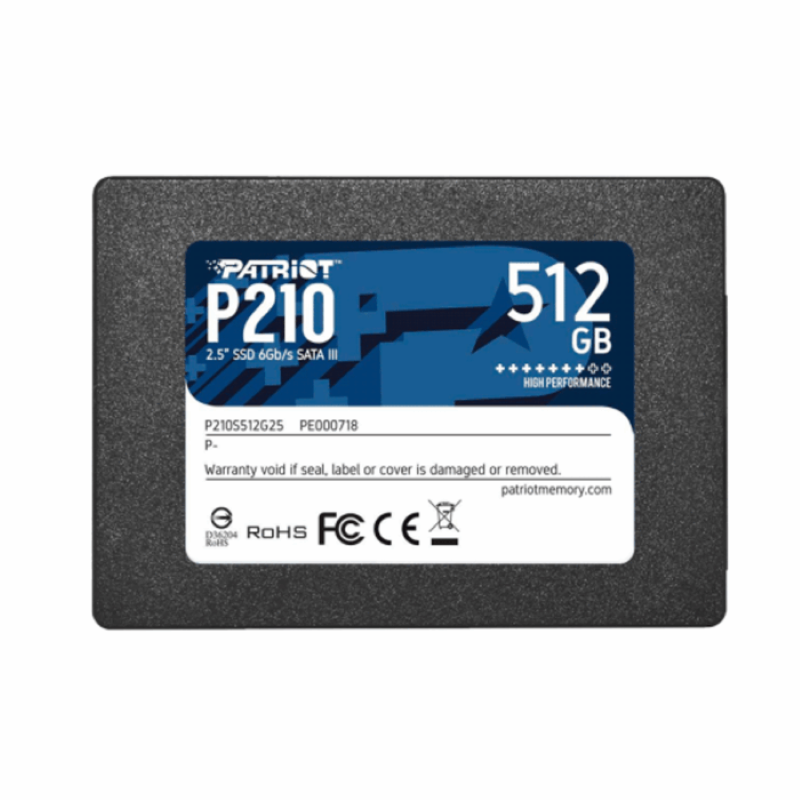 SSD Patriot P210 512GB: unidad rápida, silenciosa y confiable con tecnología TLC NAND y conexión SATA III. Ideal para gaming, edición y productividad diaria.
