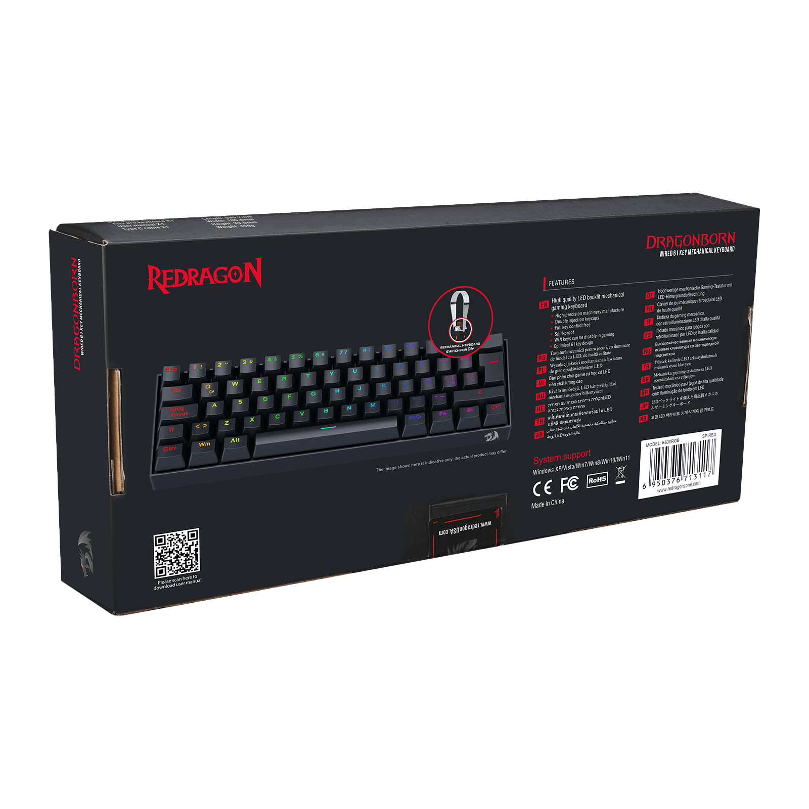 Con más de 16.8 millones de colores y múltiples efectos de iluminación, puedes personalizar el teclado para que combine con tu estilo o el resto de tu setup. La iluminación se controla fácilmente desde el software Redragon o directamente desde el teclado.